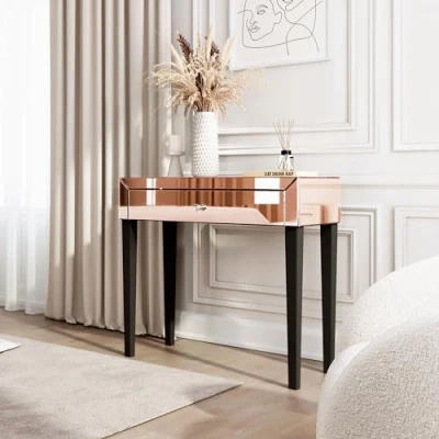 FABS Laguna Mirrored Dressing Table with 1 Drawer Crystal Handle Modern Style Glass Design Makeup Vanity Cosmetic Jewellery Storage Organiser Bedroom Furniture (Laguna Rosegold)