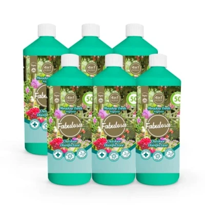 Fabulosa 4 in 1 All Purpose Outdoor Disinfectant, Cleaner and Odour Remover for Patios, Driveways Decking, 1L, 6 Pack, Meadow Fresh