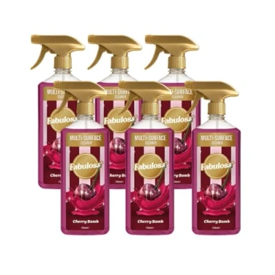 Kills 99.9% of bacteria and viruses: sanitise and prevent the spread of bacteria and viruses with Fabulosa cleaning products, while keeping your family and pets protected. Fabulosa is vegan friendly and never tested on animals All-purpose liquid: safe to use on most hard surfaces, including, worktops, tiles, baby equipment, children’s toys, furniture, door handles, toilets, potties, sinks, and as a floor cleaner, kitchen cleaner, bathroom cleaner, glass cleaner, blind cleaner, sink cleaner, and as a shower cleaner, saving heaps of time Ready to use: Fabulosa antibacterial spray provides a convenient, time saving, hassle free quick cleaning solution with a simple turn nozzle and trigger for use around your home and office. Bottles can be refilled using Fabulosa 4 in 1 Disinfectant Cleans & shines: removes dirt and grime and works as a sticky stuff remover from stubborn surfaces, leaving long lasting sparkling surfaces all around your home, office and car Long lasting freshness: an active air freshener that eliminates unpleasant odours and leaves behind a bold fruity fragrance bursting with rich cherry and raspberry, softened by fluffy marshmallow and jasmine, resting on warm amber and musk.
