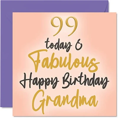 Fabulous 99th Birthday Cards for Grandma 99 Today & Happy Card from Granddaughter Grandson, Gifts, 145mm x Lovely Greeting Gift