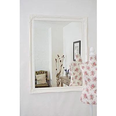 Fabulous Mirrors Extra Large French White Shabby Chic Ornate Framed Bevelled Wall/Overmantle Decorative Mirror 46inch x 36inch (117cm 91cm) Stunning Ready to Hang ITV Show Supplier, Wood, 117x91