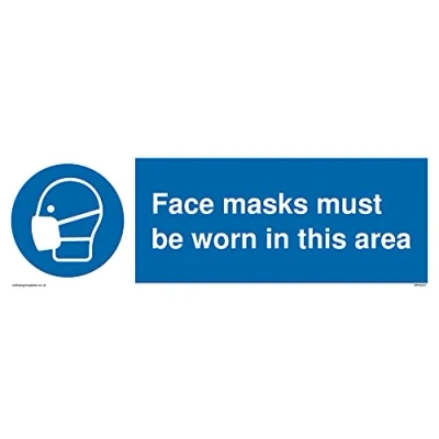 M016 : Wear a mask This sign is made from vinyl high tack A stickier sticker. Uses a stronger adhesive to make it more suitable for plastic surfaces like Wheelie Bins or where the sticker might get rubbed. 31 landscape Sign Text: Face masks must be worn in this area