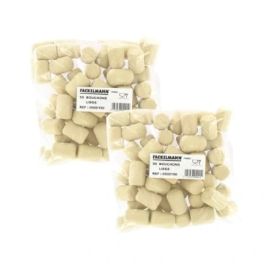 Description: Pack of 100 cork stoppers to close your bottles easily and efficiently. Clogged, they guarantee a large contact surface between cork and glass, and therefore a better seal LE PETIT +: The caps are reusable and easy to maintain thanks to the high-quality cork offered by the brand. Fackelmann COMPOSITION: Cork, nothing more natural to not alter the flavor of your wine during the few days when the bottle will stay in the kitchen DIMENSIONS: 2.2 x 3.2 cm, a standard size that fits all wine bottles available on the market Contents: 100 cork stoppers from Fackelmann, the specialist kitchen utensils brand that has been supporting households for over 100 years
