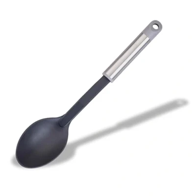 Fackelmann MODE Serving Spoon, Cooking PBT Plastic Non Stick Function Head & Stainless Steel Handle with Hanging Loop, 33 x 7.2 2.5 cm, Black, Grey Silver