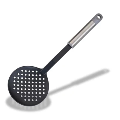 Fackelmann MODE Skimmer, Food Strainer, PBT Plastic Non Stick Function Head & Stainless Steel Handle with Hanging Loop, 34 x 11.5 3 cm, Black, Grey Silver
