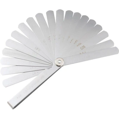 General description The Facom 804 Round Tip Feeler Gauge is crafted from polished, hardened, and tempered steel. It features straight blades etched with their sizes for easy identification, making it suitable for precise measurement tasks in various applications. Technical specifications Number of blades: 19 Blade width: 10mm Blade length: 90mm Blade thickness: ranges from 0.04mm to 1mm (in 1/100mm increments) Blade material: hardened and tempered steel Measurement system: Metric Weight per gauge: approximately 60g Compatibility and accessories Compatible with standard measurement tasks requiring feeler gauges No additional accessories included Installation No installation required; simply select the appropriate blade for your measurement Usage Use the blades to measure gaps or clearances in mechanical parts Ensure blades are clean before use for accurate readings Select the blade with the matching thickness for your measurement needs