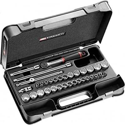 AmazonFacom Socket Set 3/8 Inch 12 Sided Inch and Metric Contents: 1 ratchet 3/8 inch palm Contents: 1 x 3/8" sliding handle Made in France, Manufacturer: Facom
