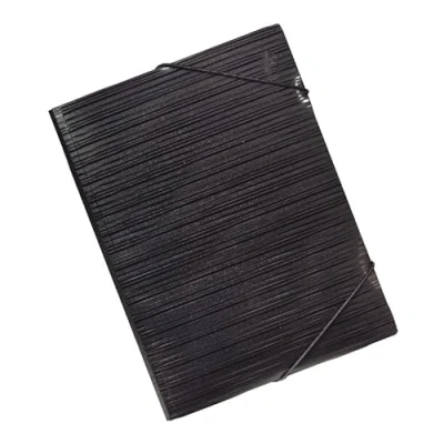 Opaque plastic folder with rubbers, black. Exterior relief. Interior flaps, A4 capacity. Measurements: 31.5 x 23.5 x 0.5 cm.