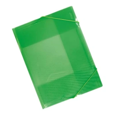 Translucent plastic folder with rubbers, light green. Exterior relief. Interior flaps, A4 capacity. Measurements: 31.5 x 23.5 x 0.5 cm.
