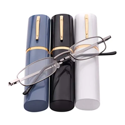 Fads & Fashions 2 x PAIRS MIX N MATCH Pen Holder Gunmetal Grey Frame Compact Reading Glasses with Case MT74 (1 Silver 1 Grey, 3.75)