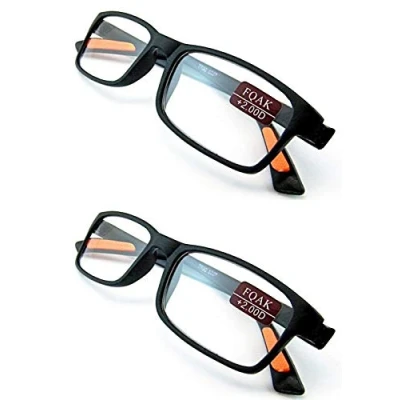 Fads & Fashions 2 x Pairs TR90 Bendable, Flexible Reading Glasses, Quality Lenses, Super lite with 13 Lens Strengths RG9 (2 Black Orange, 1.75)