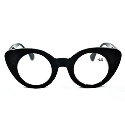 Fads & Fashions Cat Eye with Round Lens Retro Reading Glasses MT62 (Black 1.5)