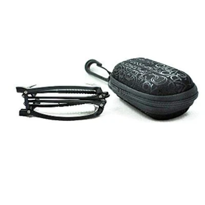 Fads & Fashions Featherweight TR90 Material Folding Bendable Black Reading Glasses Includes Case Belt Clip RG51 (Black, 2.5)