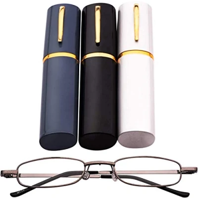 Fads & Fashions MT74 Pen Holder Grey Frame Compact Reading Glasses with Case 1+.5+2.0+2.5 (Grey Black Case, 2.5 x)