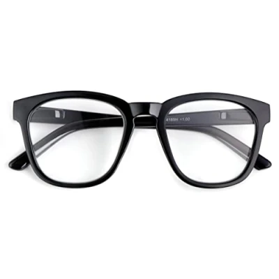 Oversize Design: These retro reading glasses feature an extra-large frame size for a bold, geek-chic look. Durable Construction: Crafted with sturdy, spring-loaded hinges for long-lasting wear and a comfortable fit. Versatile Style: Suitable for both men and women, these glasses complement various face shapes. Clear Lenses: Equipped with transparent, non-prescription lenses for a fashion-forward appearance. Lightweight Build: Made with lightweight materials for all-day comfort and easy portability. Frame Width: 142 mm ----Bridge Width: 22 mm----- Brand: Fads & Fashions ---- Department: Unisex Adults---- Type: Reading Glasses----- Lens Material: Acrylic ----- Lens Width: 51 mm ----Lens Colour: Clear ------ Frame Material: Plastic Frame with Spring Hinges----- Style: Oversized/Geek---- Lens Height: 45 mm---- Frame Colours: Shiny Black - Tortoise Temple Length: 145 mm -----Product Line: DX93