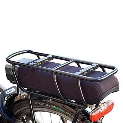 To maintain the operating temperature of the pannier rack battery on cool days Optimum weather protection as well as protection against scratches and damage Suitable for Shimano pannier rack batteries Material: 3-4.5mm Neoprene Dimensions: 275 x 219 mm (L x W), 125 g light