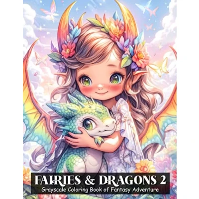 Fairies & Dragons 2: Grayscale Coloring Book of Fantasy Adventure with more Enchanting Tales Cute Baby and (Fairies Book)