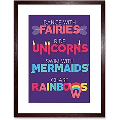Fairies Unicorns Mermaids Rainbows Purple Wall Art Print