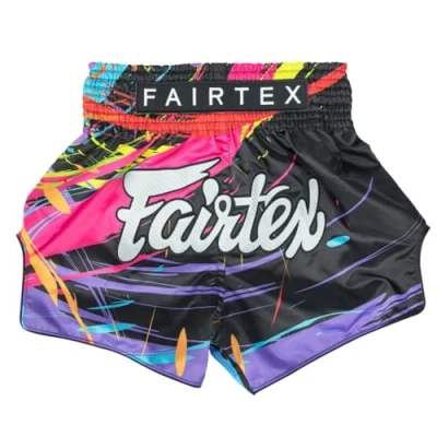 Fairtex Muay Thai Shorts are made from high-quality satin for durability and a sleek, professional look. These shorts feature a traditional Muay Thai design with intricate embroidery and detailing. The elastic waistband and drawstring ensure a secure and comfortable fit. These shorts are suitable for both training and competition use. The shorts are available in a range of sizes to fit a variety of body types.