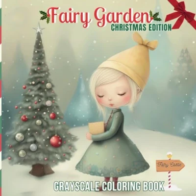 Fairy Garden Christmas Edition Grayscale Coloring Book (Super Cute Books)