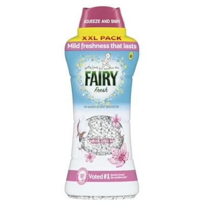 MILD FRESHNESS THAT LASTS: Add it to every wash for mild freshness that lasts - Fairy in wash scent booster contains no heavy perfume and 0% dyes VOTED #1 Scent booster for sensitive skin (Recurrent survey. Reviews may have received free product or vouchers. Verification at [email protected]) DERMATOLOGICALLY APPROVED: Fairy In-wash scent booster is dermatologically approved & endorsed by the Skin Health Alliance ALL TYPES OF FABRICS: Can be added to every loads, with all types of fabrics HOW TO USE: Pour the in-wash scent booster beads directly into the empty drum before your laundry. Personalise the scent intensity by choosing the quantity of scent boosters you want to use