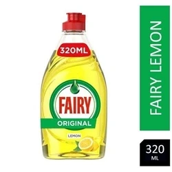 Fairy Washing Up Liquid Lemon with LiftAction 320ml delivers powerful, long-lasting suds that cut through grease for sparkling clean dishes, with a concentrated formula that requires no soaking. Gentle on hands and available in a fresh lemon scent, it's the trusted gold standard for efficient dishwashing.