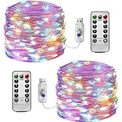 Fairy Lights Waterproof, 2 Pack 12m/39ft 120 LEDs String USB Plug in, 8 Modes Remote Timer Indoor/Outdoor Copper Wire for Bedroom, Wedding, Party, Christmas Decorations (Multi Coloured)