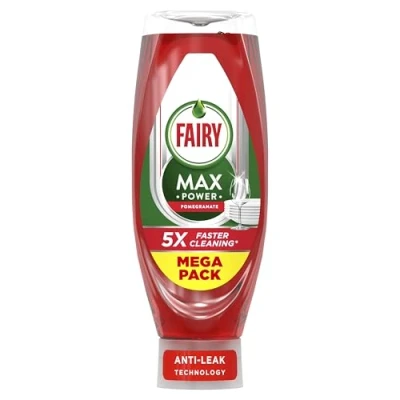 JoybuyFairy Max Power Washing Up Liquid Pomegranate 730ml delivers powerful grease-cutting action and brilliantly clean dishes with an easy-to-use, upside-down bottle. Its quick-action formula and refreshing pomegranate scent make washing up fast and effortless, without the need for soaking or scrubbing.