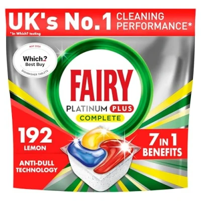 Fairy Platinum Plus All In One Dishwasher Tablets, Lemon, 192 Our Best Cleaning For A Clean Like New, Removes Dullness & Prevents Limescale