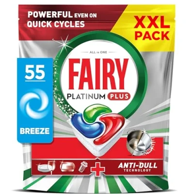 POWERFUL EVEN IN QUICK CYCLES: These powerful dishwasher tablets combine liquid and powder, delivering 1st time cleaning, even in short cycles < 55 min) IMPECCABLE CLEAN WITHOUT PRE-WASH: Fairy Platinum Plus All-in-One dishwasher tablets are your solution for achieving impeccably clean dishes, even without pre-wash ANTI-DULL TECHNOLOGY: Lifts away the dullness built up over time to restore the original shine of your dishes SUPER SHINE FUNCTION: Delivers brilliantly sparkling dishes thanks to the super shine function FILTER CLEAN: Cleans your greasy filter effectively for clean dishes and a fresh dishwasher