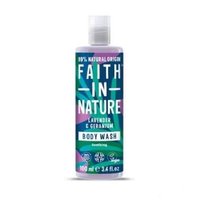 Faith In Nature 100ml Travel Size Lavender and Geranium Body Wash, Relaxing Shower Gel, Vegan Cruelty Free, No SLS or Parabens