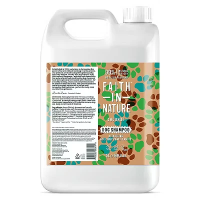 Faith In Nature Natural Coconut Dog Shampoo, Vegan & Cruelty Free,No SLS,Silicones or Parabens, Detangling, For Curly Coats, 5L Refill Pack