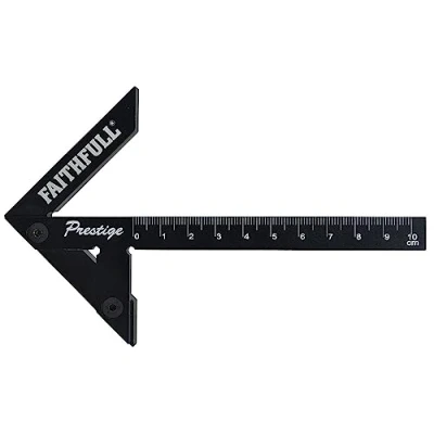 General description The Faithfull Prestige Centre Finder Gauge is a precision tool designed to locate the centre point of square or cylindrical objects. Manufactured from durable aluminium using computer numerical controlled (CNC) machines, it features a black anodised finish for enhanced corrosion resistance and laser-engraved measurement scales for high accuracy. This tool is ideal for workshops and engineering applications, ensuring precise cuts and measurements. Technical specifications Size: 100mm Measuring capacity: 90mm Material: Aluminium with black anodised finish Measurement scale: Laser-engraved in millimetres Compatibility and accessories Compatible with objects up to 180mm in diameter or width Suitable for use with other measuring and marking tools for precise work Installation Place the gauge on the object to be measured or marked Align the tool according to the desired measurement points Use the ruled markings to identify the centre or cut lines Usage Find the centre