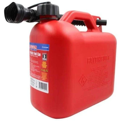 General description This 5-litre plastic fuel can is designed for safe storage and transportation of petrol, diesel, or other fuels. Made from high-density polyethylene, it offers excellent impact, chemical, and stress-cracking resistance. The can features a leak-proof cap attached to prevent loss during handling and transportation. It is suitable for use with various fuels and is available in different colors for easy identification. Technical specifications Capacity: 5 liters Material: High-Density Polyethylene (HDPE) Color options: Red, green, black Compliance: UN/16/1558/23 for dangerous goods packaging, PCR 2014 standards Features: Leak-proof cap, attached spout for pouring Compatibility and accessories Compatible with petrol, diesel, and other liquid fuels Supplied with a spout for easy pouring Installation No installation required; ready to use out of the box Usage Use the can to store and transport fuels safely Ensure the cap is tightly closed after filling Use the attached