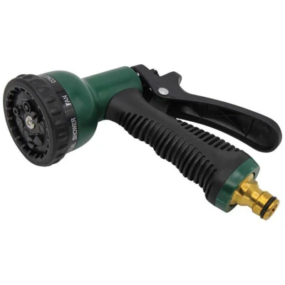 General description The Faithfull Garden Spray Gun offers versatility with nine different spray patterns: cone, fan, flat, angle, jet, mist, soaker, shower, and quad. The user can easily select the desired pattern by turning the front-facing selector nozzle. Designed for comfort, it features a grip handle and a durable brass male connector for secure attachment to garden hoses. Technical specifications Number of spray patterns: 9 Material: Brass connector Model number: SBB6036 EAN: 5023969264905 Compatibility and accessories Compatible with standard garden hoses Includes a brass male connector for secure attachment Installation Attach the spray gun to a garden hose using the brass connector Ensure the connection is tight to prevent leaks Usage Turn the selector nozzle to choose the desired spray pattern Hold the handle comfortably and press the trigger to spray Other information