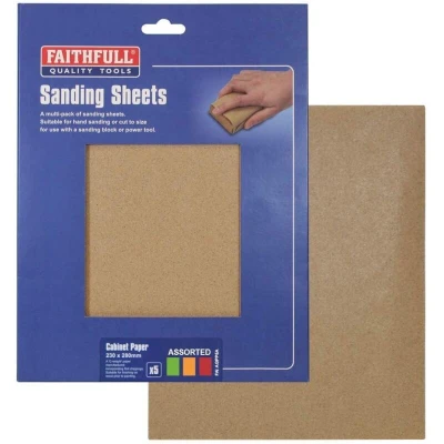 General description Faithfull Glasspaper Sanding Sheets are a versatile and essential tool for any DIY enthusiast or professional. Known for their durability, these sanding sheets are manufactured using C-Weight paper and flint, making them suitable for a variety of applications. This assorted pack is ideal for finishing wood surfaces prior to painting or varnishing. Technical specifications Size: 230mm x 280mm Grade: Assorted Grit: Assorted Pack Quantity: 5 MPN: FAIAGPP5A EAN: 5023969246079 Other information