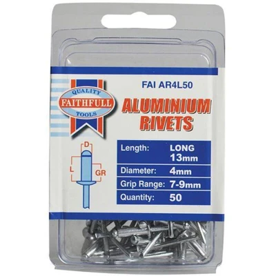 Faithfull Aluminium Rivets 4 x 13mm Long Pre Pack of 50 FAIAR4L50