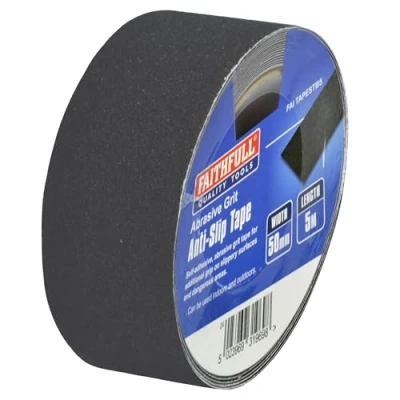 General description Faithfull Anti-Slip Tape provides a safe, slip-resistant surface on stair treads, walkways, and ramps. It is designed for marine, industrial, and domestic use, making it a versatile solution for various environments. Technical specifications Colour: Black Width: 50mm Length: 5m Type: Tape Other information
