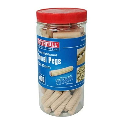 General description These Faithfull fluted dowel pegs are made from air-dried beechwood and are designed for creating secure joints between pieces of wood or boards. They are ideal for woodworking projects requiring precise and strong connections. Technical specifications Material: Beechwood Type: Fluted dowels Size: 40 x 10mm Pack quantity: 100 pieces MPN: FAIDOW10100T EAN: 5023969262796 Installation Insert the dowels into pre-drilled holes in the wood pieces. Align the pieces and press together to ensure a tight fit. Usage Use for making strong, precise joints in carpentry and DIY projects. Ideal for furniture, cabinetry, and wood repairs. Other information