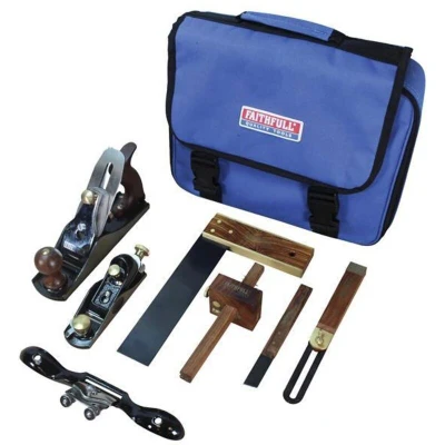 General description The Faithfull 7 Piece Carpenter's Tool Set is designed for both professional and DIY carpenters. It is supplied in a padded carry bag for easy transport and storage. Each tool is crafted from high-quality hardwood, brass, and steel, ensuring durability and performance. Technical specifications Includes: 1 x No.4 Plane 1 x 601/2 Block Plane 1 x Spokeshave 1 x Try Square 225mm (9in) 1 x Sliding Bevel 225mm (9in) 1 x Marking Knife 175mm (7in) 1 x Mortice & Marking Gauge 150mm (6in) Manufacturer Part Number: RI61-CS7PSNMB EAN: 5023969272764 Other information