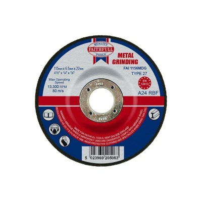 AmazonFor use with a variety of machines, mini-grinders to stationary cutting-off machines Use in stock removal applications on ferrous and non-ferrous metal Depressed Centre Metal Grinding Discs are manufactured using Aluminium Oxide abrasive grit with fibreglass reinforcing and resin bonded to provide both safety and optimum cutting performance Manufactured to EN 12413 standard, Weight: 0.15 pounds, Manufacturer: Faithfull