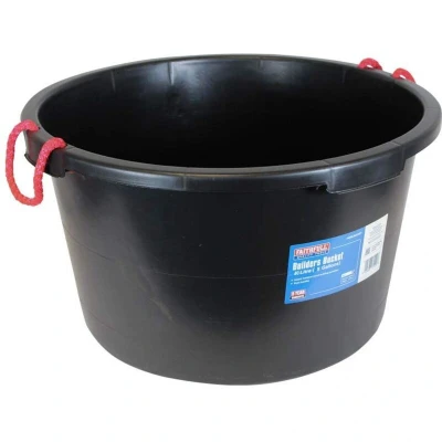 General description The Faithfull FAI40LBUCKET is a heavy-duty builder's bucket with a capacity of 40 liters (9 gallons). Made from impact-resistant and flexible material, it is designed for mixing and transporting both dry and wet materials such as cement, plaster, mortar, paint, and other liquids. Its round shape enhances durability during mixing, while two rope handles provide easy lifting and portability. This versatile container is ideal for storage, waste removal, and preparing various mixes, making it essential on construction sites. It can also be stacked for convenient storage when not in use. Technical specifications Capacity: 40 liters (9 gallons) Material: Heavy-duty impact-resistant plastic Color: Black Part Number: PATROL BUILDING CONTAINER 40LT Compatibility and accessories Suitable for mixing cement, mortar, plaster, floor screeds, paint, and other liquids Compatible with various construction and DIY tools for mixing and transport Installation No installation required;