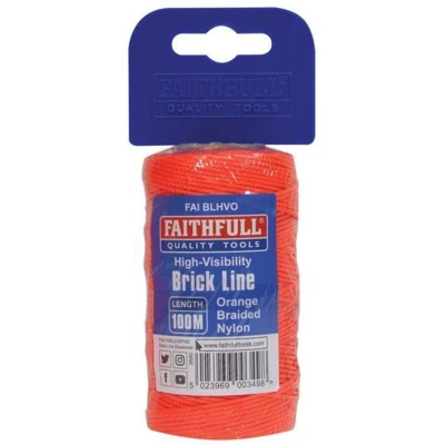 General description The Faithfull Hi-Vis Nylon Brick Line is designed for bricklaying and marking out. This high-visibility line is made from strong, flexible braided nylon that resists fraying, mildew, heat, and water, making it suitable for both professional and DIY applications. Its construction ensures less stretch and better durability compared to conventional twisted cords, allowing it to be used effectively as a plumb line. Technical specifications Length: 100 meters (330 feet) Material: Braided nylon Color: Orange Resistant to: Fraying, mildew, heat, water, and dryness Part number: FAIBLHVO EAN: 5023969003498 Compatibility and accessories Fits the Faithfull Brick Line Dispenser FAIBLDISPHD Installation Attach the line to the dispenser or use it manually for marking and measuring tasks. Usage Ideal for bricklaying, marking out, and general construction work. Can be used as a plumb line due to its stability and resistance to spinning. Other information Rot-proof, waterproof, and