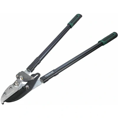 General description Faithfull Countryman Anvil Loppers feature a powerful ratchet action that allows for effortless cutting of branches up to 25mm thick. The bypass cutting action is ideal for cutting live wood, while the anvil action is perfect for cutting dead wood. Technical specifications Cutting Capacity: 38mm (1.5in) Overall Length: 760mm (30in) Usage Designed for cutting branches and wood with ease. Suitable for both live and dead wood. Other information Top quality SK5 Japanese steel blade for a clean cut and prolonged life. Protective coating to prevent corrosion. Non-stick coating to reduce friction. Strong aluminium handles with reinforcing ribs to reduce flex. Soft-grips for extra comfort during prolonged use.
