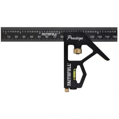 General description The Faithfull Prestige Combination Square is a versatile measuring tool made from durable aluminium with a black anodised finish for enhanced corrosion resistance. It features laser-etched scales for precise measurements and can be used for various tasks in woodworking and metalworking. Technical specifications Material: Aluminium with black anodised finish Measurement range: 150mm (6 inches) Features: Laser-etched scales, spirit level, marking scribe Compatibility and accessories Suitable for woodworking and metalworking projects Can be used as a try square, T-square, mitre square, level, and marking gauge Installation No installation required; ready to use out of the box Usage Use for measuring and marking angles Checking right angles Leveling surfaces Includes a spirit level for horizontal and vertical alignment Other information Manufactured to high standards with a 10-year guarantee