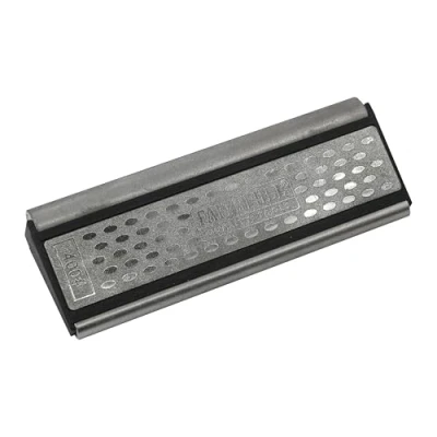 ManoManoGeneral description The Faithfull Curved Diamond Whetstone is a compact and versatile sharpening tool designed for both flat and curved blades. It features two flat sides with different grits and removable diamond rods, making it suitable for sharpening chisels, knives, scissors, and moulding plane blades. The design allows for precise sharpening of flat and concave surfaces, ideal for woodworking and metalworking applications. Technical specifications Overall size: 103 x 40 x 12 mm Diamond surfaces: 2 x flat (20 x 100 mm) with 400G coarse and 600G medium grits Diamond rods: 2 x rods (6 mm and 12 mm diameter), both with 600G grit, 100 mm length Material: Diamond-coated surfaces and removable rods Compatibility and accessories Compatible with a wide range of blades including chisels, knives, scissors, and moulding plane blades Includes two removable diamond rods for honing concave surfaces Installation Place the whetstone on a stable, flat surface during use Remove the diamond rods if