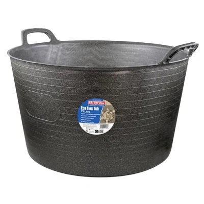 75L Capacity & Reinforced Handles – With a large 75 Litre capacity, this flexi tub is big enough to handle large loads in one go, saving time and effort with fewer trips. Despite its size, the flexible design makes it easy to carry, pour and store compared to rigid tubs. With reinforced handles, this lightweight but strong tub is suitable for carrying heavy loads of up to an impressive 150kg. Wide Application – Built for larger scale tasks, this tub is ideal for outdoor projects, collecting garden waste, general storage, pouring liquids, mixing concrete, carrying bulky items and other home, building site, farm and stable uses, offering a reliable, adaptable and environmentally conscious solution to a wide range of heavy-duty tasks. Shock & Impact Resistant - The adaptable flex tub offers pliability, while remaining tactile and impact-resistant, ensuring reliable performance, built to withstand demanding environments. Cold & Heat Resistant - Adding to its versatility and practicality, the eco flex tub cold and heat resistant, ideal for year-round use. 100% Recycled & Recyclable - For a dependable and hardwearing, yet environmentally friendly option, the sustainable flex tub is made using 100% recycled and recyclable material, crafted from low-density polyethylene blended with aluminium obtained from recycled beverage cartons.