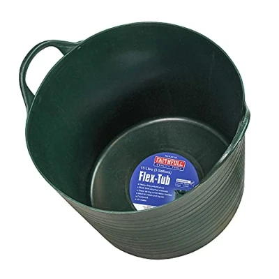 AmazonMade from heavy-duty polyethylene, these tubs feature super-strong comfortable handles and are ideal for solids and fluids. Applications include: carrying items, pouring liquids, general gardening, mixing concrete, animal feed Faithfull Green Flex Tubs are made from a 100% recyclable material Diameter: 33cm Height: 23cm Please use both handles when carrying or moving and avoid dragging. Also ensure the tub is not overfilled, or has uneven loads., especially when carrying liquids Faithfull 5 Year Manufacturers Guarantee, Manufacturer: Faithfull