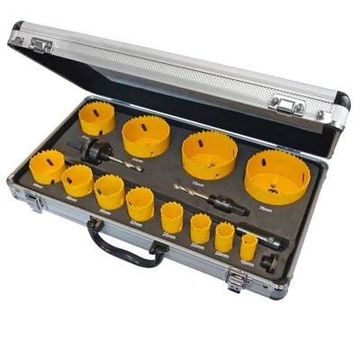 General description The Faithfull 16 Piece Universal Varipitch Holesaw Kit is designed for professionals and DIY enthusiasts alike. This comprehensive set includes the 12 most commonly used holesaw sizes, along with two arbors, an extension, and an adaptor, all housed in a sturdy aluminium case for secure storage. The bi-metal construction with hardened high-speed steel teeth ensures durability and safety, as these holesaws will not shatter under load. Ideal for cutting perfect holes in a variety of materials, this kit is a must-have for construction workers, builders, plumbers, and electricians. Technical specifications Contains 12 Varipitch Holesaws: 16mm, 20mm, 22mm, 25mm, 32mm, 35mm, 38mm, 44mm, 51mm, 64mm, 70mm, and 76mm 1 x 3/8in Arbor (14-30mm) 1 x 7/16in Arbor (32-152mm) 1 x Arbor Adaptor 1 x 300mm Extension Bar Material: Bi-Metal Pitch: Variable Compatibility and accessories Compatible with most variable speed power drills. Accessories included in the kit are: 12 Varipitch