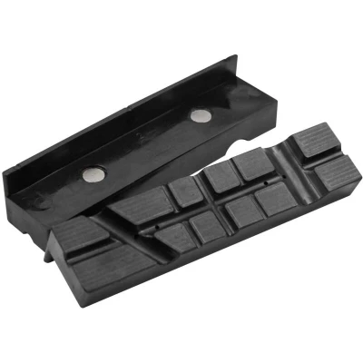 General description These magnetic plastic vice jaws are designed to fit most mechanics bench vices, including Faithfull models. They provide a secure grip without damaging soft or polished surfaces. Ideal for holding round stock and tubes at various angles, they are easy to attach and remove thanks to inset magnets. Supplied in pairs for versatile use. Technical specifications Size: 125mm (5 inches) Material: Plastic with magnetic inset Designed to fit standard mechanics bench vices Grooved surface for holding round stock and tubes at 45°, 90°, and 180° angles Compatibility and accessories Compatible with Faithfull and most other mechanics bench vices Includes magnetic inset for easy attachment and removal Installation Place the plastic jaws onto the metal jaws of your vice Ensure the magnets adhere securely to the metal surface Adjust as needed for the desired grip and angle Usage Use to hold soft or polished surfaces without damage Hold round stock or tubes at various angles for